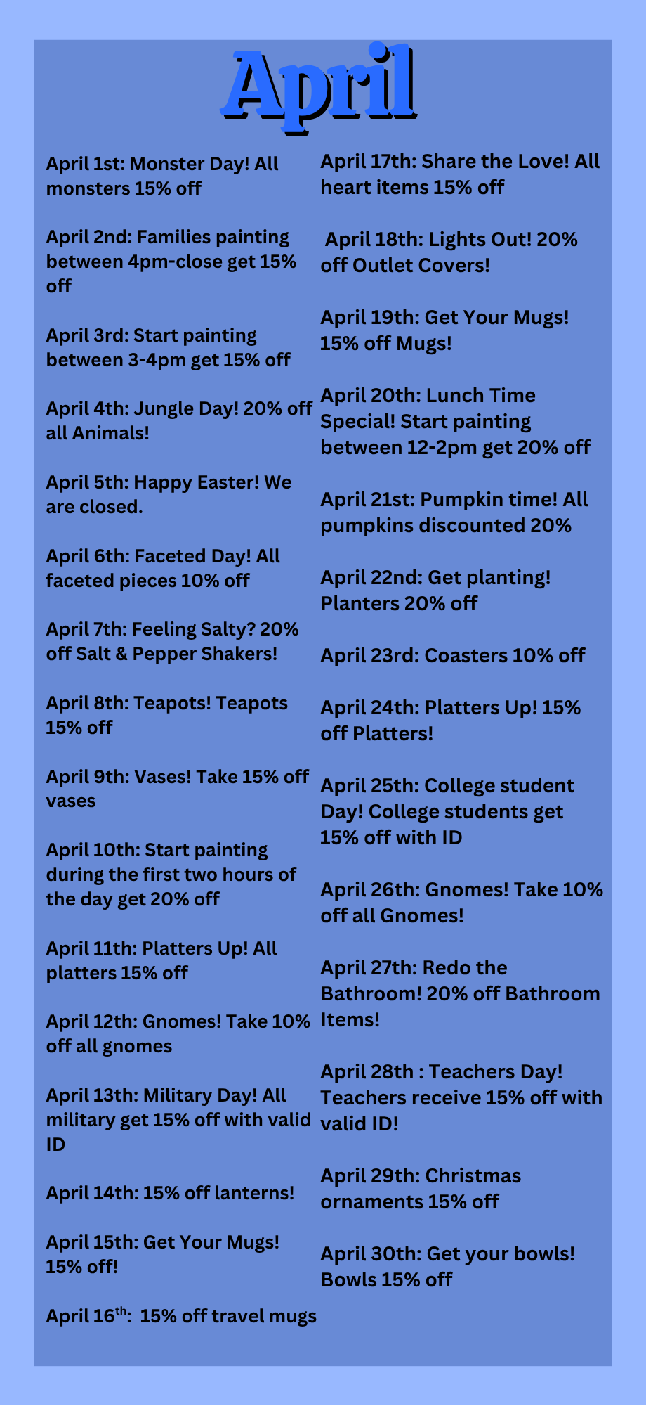 Daily Discount Calendar